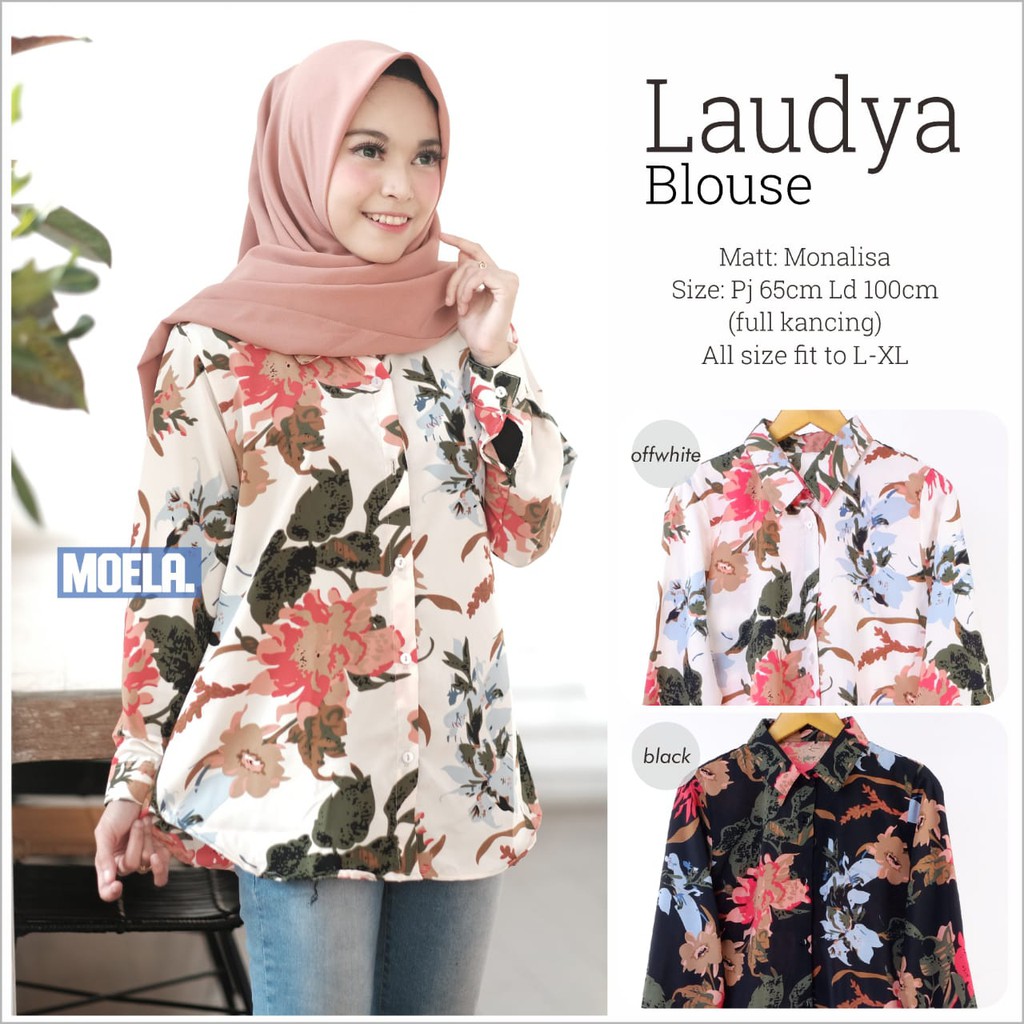 Baju atasan kemeja lengan panjang motif bunga kerja kantor sumber :